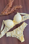 Conjunto clássico com bojo e aro, todo estruturado em renda e possui uma pequena base para ajudar na sustentação. Calcinha fio duplo toda em renda. Perfeito para quem ama uma peça trabalhada e com conforto, ideal para ser usada no dia a dia quanto para uma noite especial!